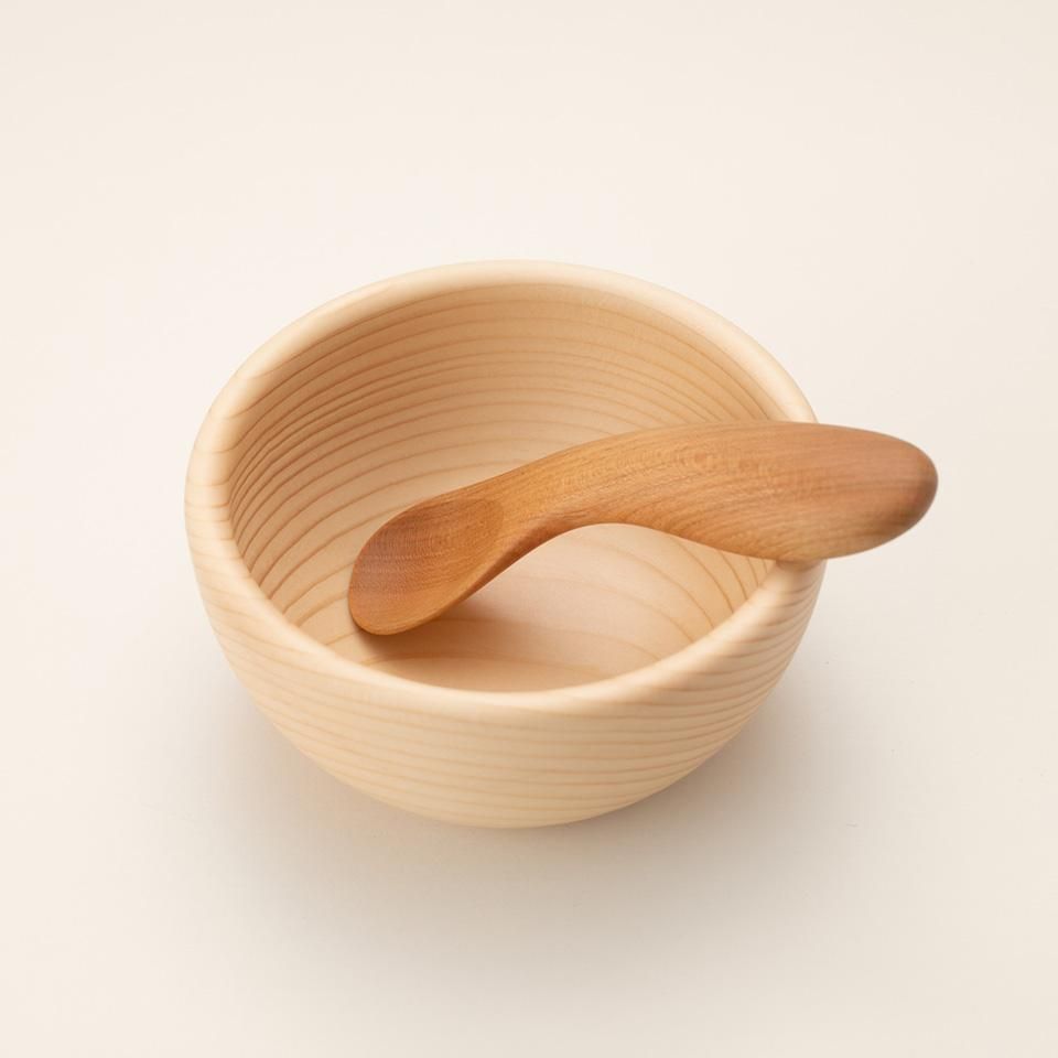北海道・置戸町の地域ブランド、オケクラフトの職人が作ったシリアルボウルとスプーンのセットです。食品衛生法をクリアした安全な塗料で表面をコーティングしてあるので、衛生的に使えます。