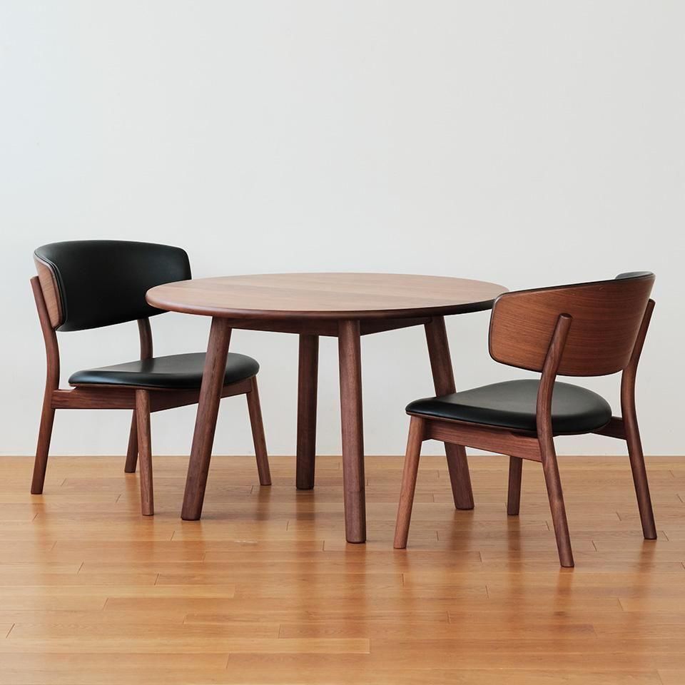 サイズは直径100cm(2人掛け)と、120cm(4人掛け)の2種類。材料は、白木の経年変化が楽しめるオークと、高級感のあるウォールナットから選べます。表面はつや消しのウレタン塗装仕上げ(オイル仕上げをご希望の方は備考欄でお知らせください)。なお、当店で購入された方には店舗独自の3年間品質保証をお付けします。